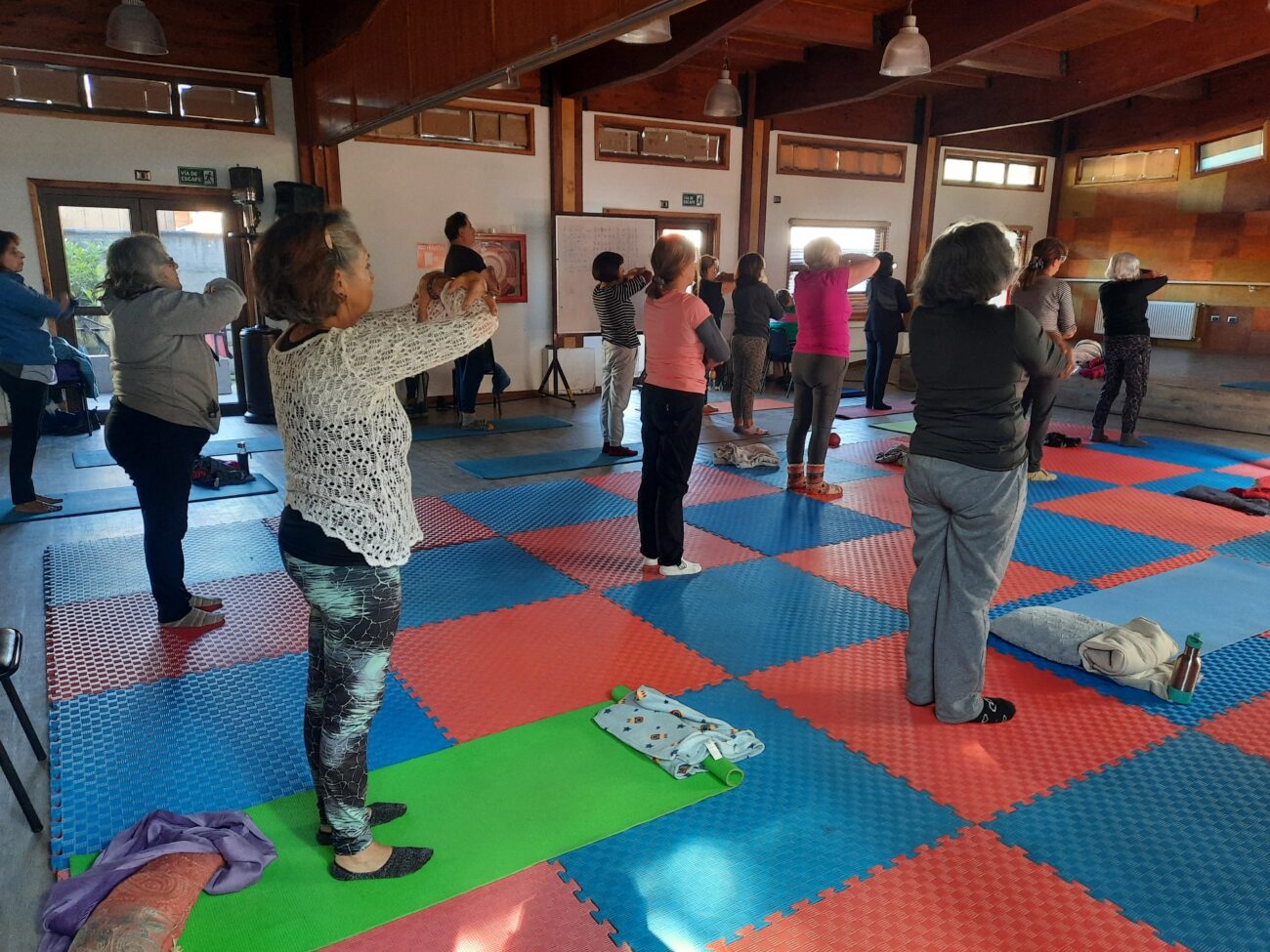 Durante la jornada de esta mañana en el Centro Integral del Adulto Mayor de la comuna de Pucón, los adultos mayores se reunieron para ejercitarse, en este caso, existe el taller de Pilates y para ellos significa una agradable actividad para realizar diversos ejercicios físicos durante su rutina diaria.
