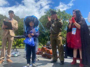 En el cierre del Carnaval se entregaron premios y reconocimientos a los disfraces más creativos; además de cuadros artísticos muy aplaudidos en la Plaza de Armas de Pucón.