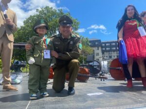 “Me siento bien, así, libre, porque primera vez que estoy disfrazado y estoy muy feliz”, comentó el estudiante de la Escuela Paillaco, David Valdenegro, quien apareció como un llamativo Cóndor, “porque es un ave majestuosa que está en Chile. Estas actividades son importantes, porque los niños se divierten, y en mi curso, entre más se divierten, más le hacen caso al profesor. Entonces, yo creo que igual está bien esto”.