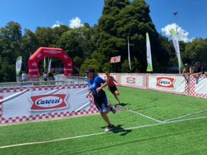 También encaró la actividad del nado, ciclismo y trote July Barahona, quien después de llegar a la meta afirmó que el evento “fue súper divertido y muy emocionante, el agua estaba rica, pero hubo mucho alboroto, solamente me jalaron para atrás hartas veces. Lo más difícil fue el nado. De Pucón, muy lindo el paisaje, además en mi edificio tenemos una vista súper linda al volcán”.