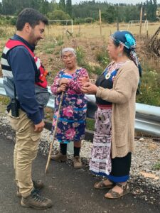 Desde Pucón, el aporte logístico consistió en “un camión Aljibe, un camión Tolva, una retroexcavadora y equipo humano de GRD con un grupo de extinción de incendios forestales”, detalló Backit.