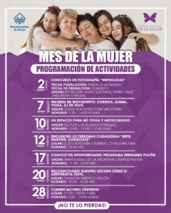 La Municipalidad de Pucón, a través de su Oficina de la Mujer, ha organizado una serie de actividades para conmemorar el Día (que es este 8 de marzo) o más precisamente el Mes de la Mujer, fecha especial que ya comenzó a reconocerla la entidad edilicia lacustre con el concurso fotográfico “Enfocadas”, en donde cualquier mujer puede participar con una imagen obtenida simplemente con cualquier teléfono celular.