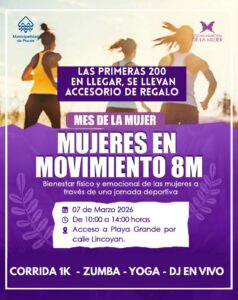 Además, este sábado 7 de marzo se desarrollará la actividad “Mujeres en Movimiento, 8M”, evento consistente en una corrida familiar de un kilómetro (no competitiva) que incluirá zumba, yoga y participación de un DJ en vivo.