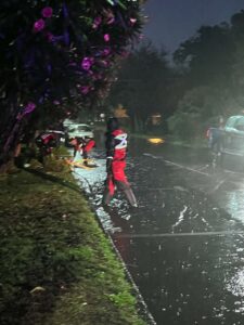 A raíz de las exigencias climáticas de estas horas hay equipos de turno, tanto de día como de noche, que están pendientes de eventuales caídas de árboles o probables incendios, labor que va en apoyo al Cuerpo Bomberos de Pucón.