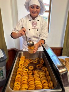 Protagonista de la jornada, Javiera Antipichun, de tercero medio del Liceo Hotelería y Turismo, valoró que pudieran lucirse, “porque pudimos cocinar para otras personas y distribuir el turismo en ellas. Sí fueron bastantes horas de trabajo, yo terminé muy cansada, mi grupo terminó muy cansado con las recetas, pero se pudo. Y es bueno que la gente pruebe tus cosas porque te da algo especial. Nosotros con mi grupo hicimos troncos de castaña, que era un relleno de manjar con envoltura y nutella de castaña”.