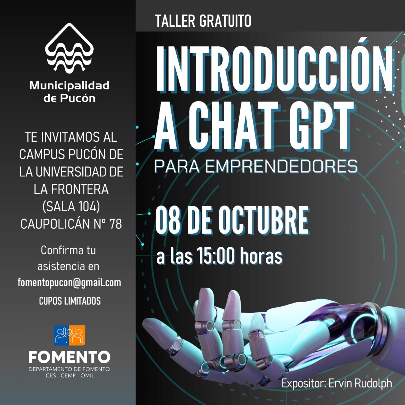 DEPARTAMENTO DE FOMENTO DEL MUNICIPIO DE PUCÓN INVITA A TALLER PARA EMPRENDEDORES SOBRE EL USO DE INTELIGENCIA ARTIFICIAL Gallery DEPARTAMENTO DE FOMENTO DEL MUNICIPIO DE PUCÓN INVITA A TALLER PARA EMPRENDEDORES SOBRE EL USO DE INTELIGENCIA ARTIFICIAL Noticias DEPARTAMENTO DE FOMENTO DEL MUNICIPIO DE PUCÓN INVITA A TALLER PARA EMPRENDEDORES SOBRE EL USO DE INTELIGENCIA ARTIFICIALComunicaciones2024-10-01T17:23:19-03:00Octubre 1st, 2024|